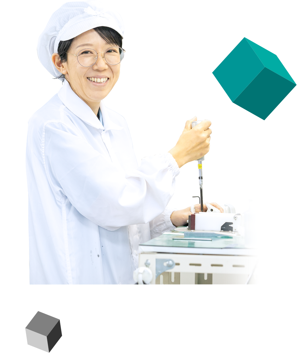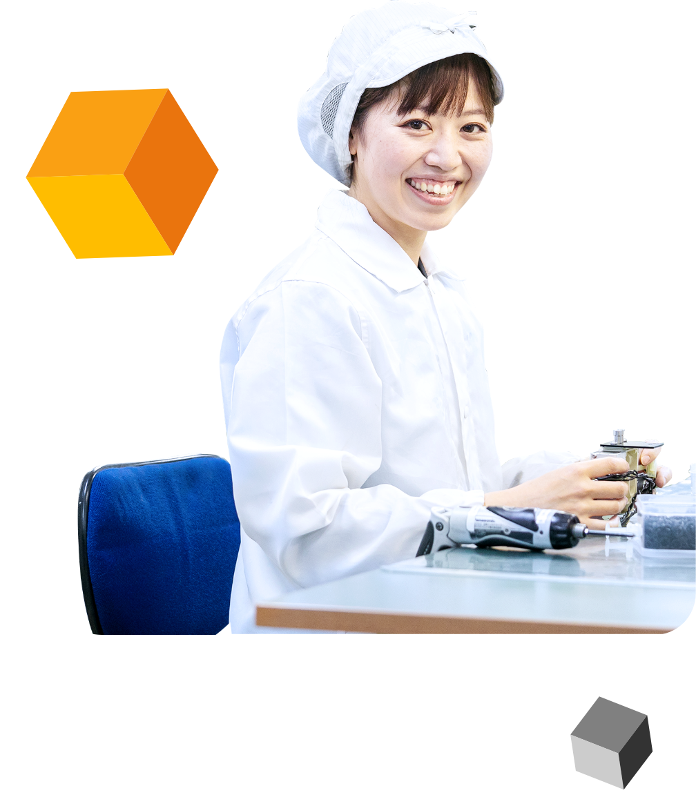 私は医療機器要素部品の製造部門で、医療機器装置の組立を担当しています。経験を積むごとに新たな発見があり、「日々より良い製品をつくれるように頑張ろう」「次はさらに効率的に、短時間で完成させよう」と、常に向上心を持って働くことができています。