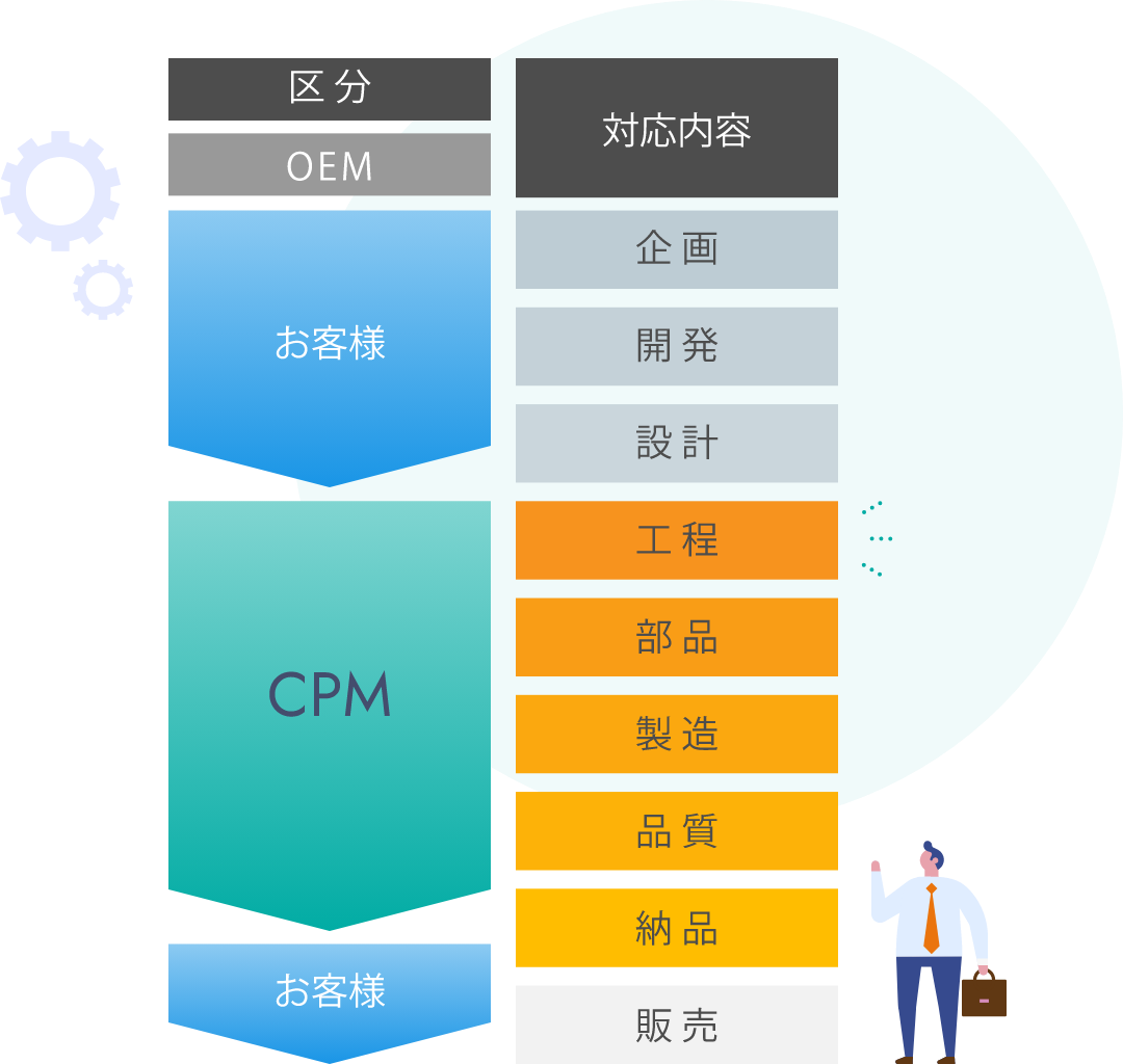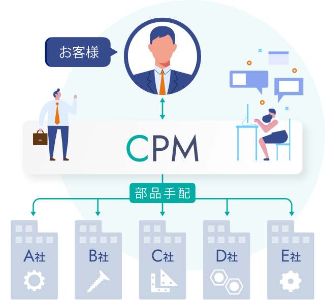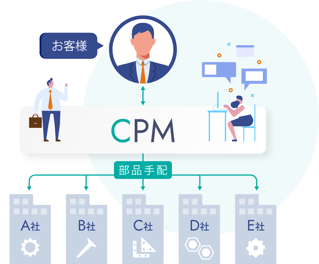 調達先が多くなるほど複雑化する手続きをCPMが代行。調達業務や組み立て業務にかかる時間コストを削減して、貴社の業務負担を軽減します。
