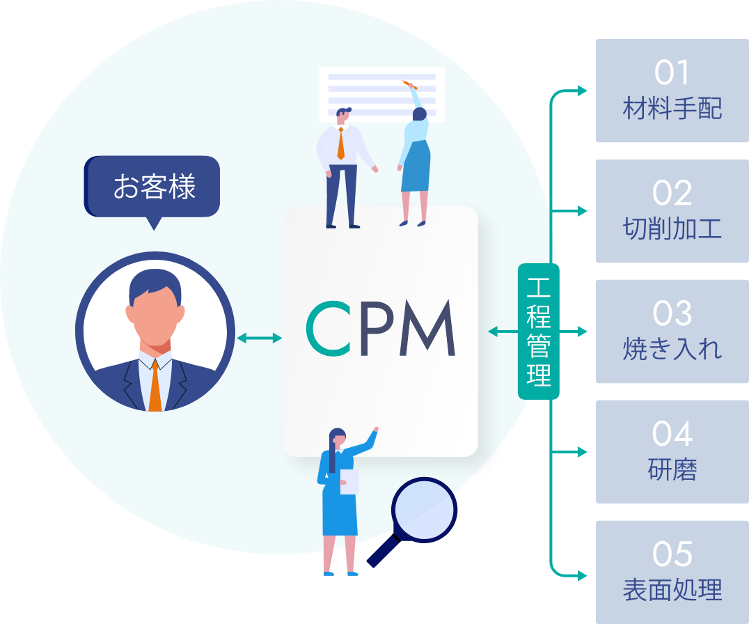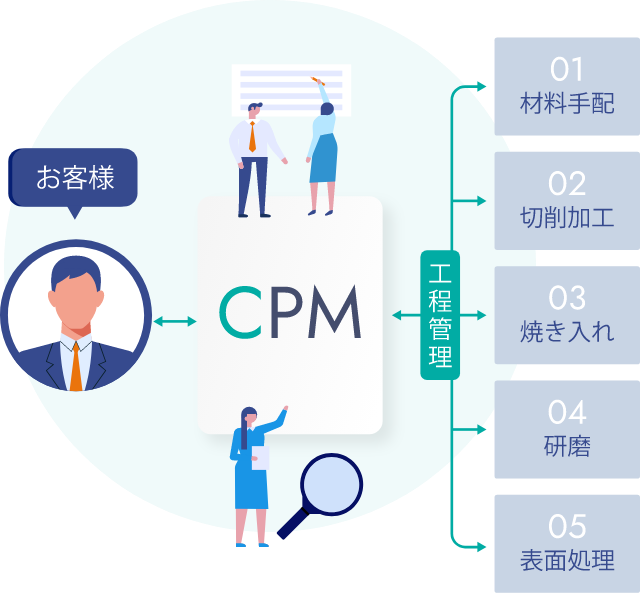 工程の長い製品は「管理」が大変です。 膨大な時間も必要です。CPMが全ての工程の管理を一括で負担します!手配・加工から納品まで安心してお任せください。
